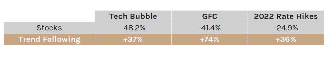 Among these, systematic strategies, such as managed futures and trend-following stand out. They capitalize on price movements across a wide range of global markets, including many that traditional portfolios ignore. Their returns are largely independent of both stocks and bonds, and they tend to perform particularly well during extended market downturns. Adding uncorrelated strategies like these meaningfully improves diversification and the overall risk-return profile—making the portfolio better.
